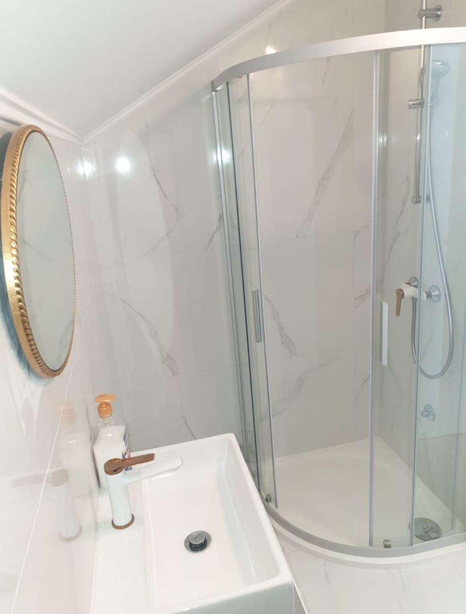 - Rooms with a bathroom, 20 m² in size, with a double bed.